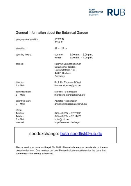 Find, Read, And Discover Botanischer Garten Ruhr Uni Bochum Oeffnungszeiten, Such Us: