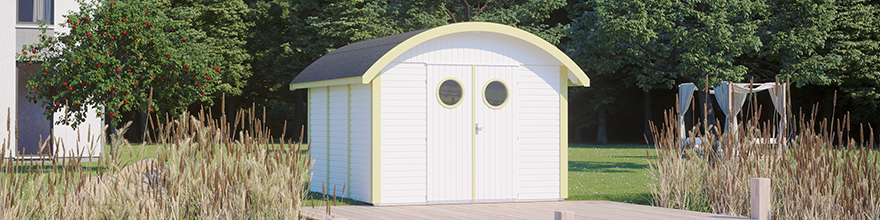 Immobilien in der gemeinde 18230 rerik zb. Gartenhaus mit gebogenem dach. Gebogenes dach satte farben und bullaugen das puristisch elegante geraetehaus rerik will keine simple gartenlaube sein.