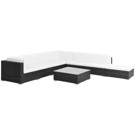 Garten lounge set mit auflagen poly rattan schwarz auf diesem modularen lounge set koennen sie einen entspannten sonnigen nachmittag oder sommerabend mit ihrer familie und ihren freunden geniessen. Garten lounge set schwarz mit auflagen poly rattan 37599. Wir empfehlen das set bei regen schnee und frost abzudecken um eine lange lebensdauer zu gewaehrleisten.